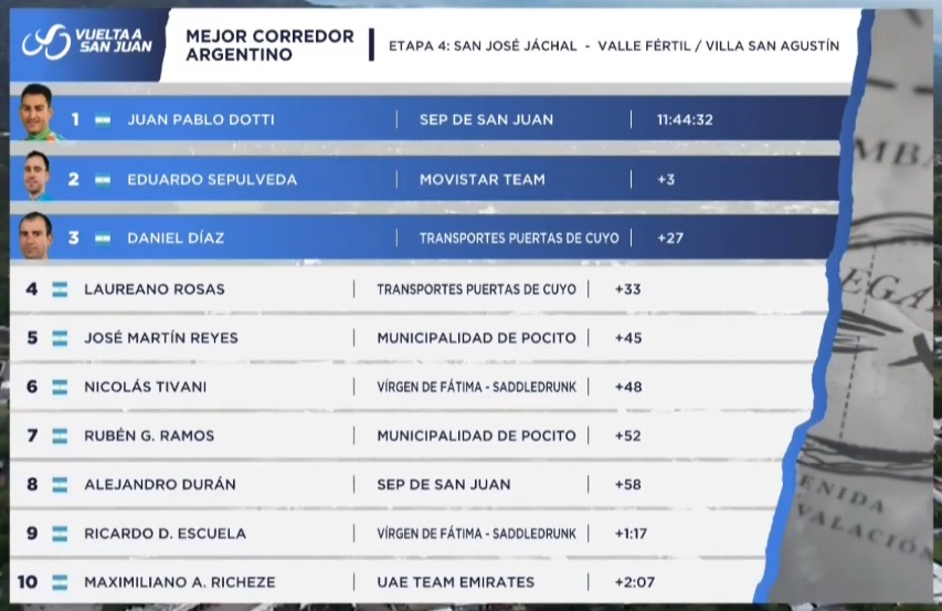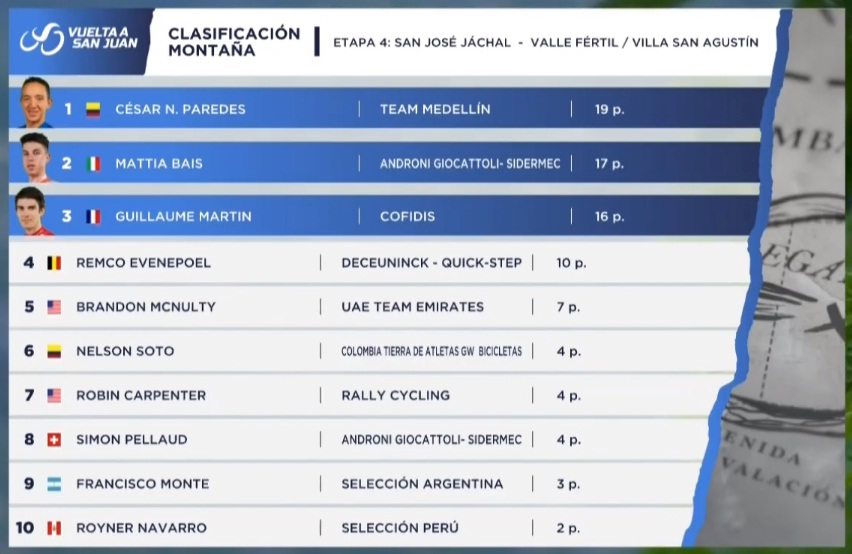 Todos los líderes tras culminar la cuarta etapa