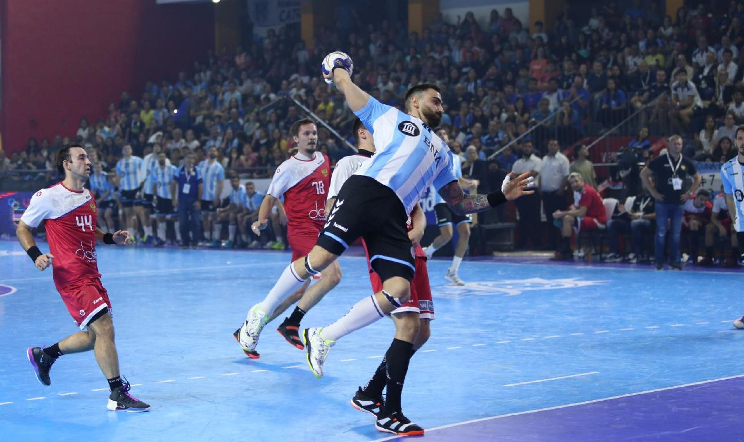 En el complemento, Argentina buscó mantener la pelota y tras un inicio adverso (11-14), logró empatar en 14. Pero Rusia volvió a ser el equipo efectivo y sin errores a la hora de marcar, se despegó 18-15. Entonces vino lo mejor de Los Gladiadores y con una buena contra y los reflejos del ingresado Leo Maciel, fueron descontando hasta ponerse 18-18 y luego pasar al frente 21-18, para hacer explotar las tribunas de emoción.