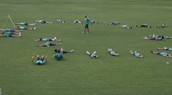 Después del duro trabajo en la arena del jueves, ayer el plantel de Sportivo Desamparados siguió con el durísimo trabajo de pretemporada pautado por el cuerpo técnico puyutano y ayer lo hizo en triple turno, terminando con un mini ensayo futbolístico en Huazihul donde asomó ya el modelo táctico y los nombres que Dillon podría utilizar para el debut. El sistema 4-4-2 es el favorito del entrenador y con Walter Cuevas intensificando su recuperación más las dolencias que aún manifiesta Germán Gigena, la dupla de ataque fue Artura-Parisi, manteniendo los cuatro del medio Drocco, Lamberti-Calgaro y Alvarez y poniendo en defensa a Fontana, Barth, Rosso y Díaz. Por ahora ese es el modelo y los nombres, falta solamente tiempo.