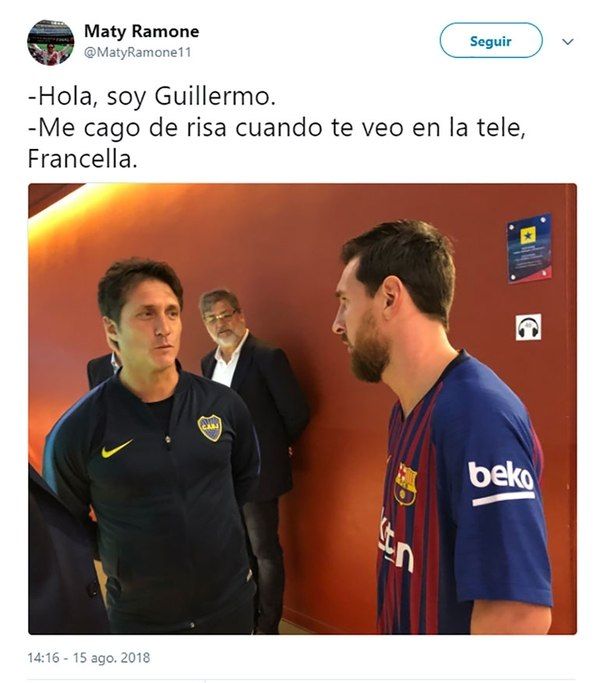 La floja actuación de Julio Buffarini, la charla entre Guillermo Barros Schelotto y Lionel Messi, y la diferencia entre la celebración de los goles que le marcó la "Pulga" a River y Boca, estuvieron entre los principales tópicos que utilizaron los fanáticos para emitir sus burlas.