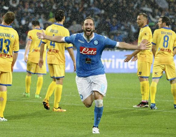 El delantero argentino del Nápoli, Gonzalo Higuaín, superó el récord de goles marcados en una temporada de Calcio con 36 tantos, gracias a su hat-trick (tres tantos) contra Frosinone, por la última fecha de la temporada que le permitió al conjunto del sur italiano garantizar su lugar en al próxima Champions League.