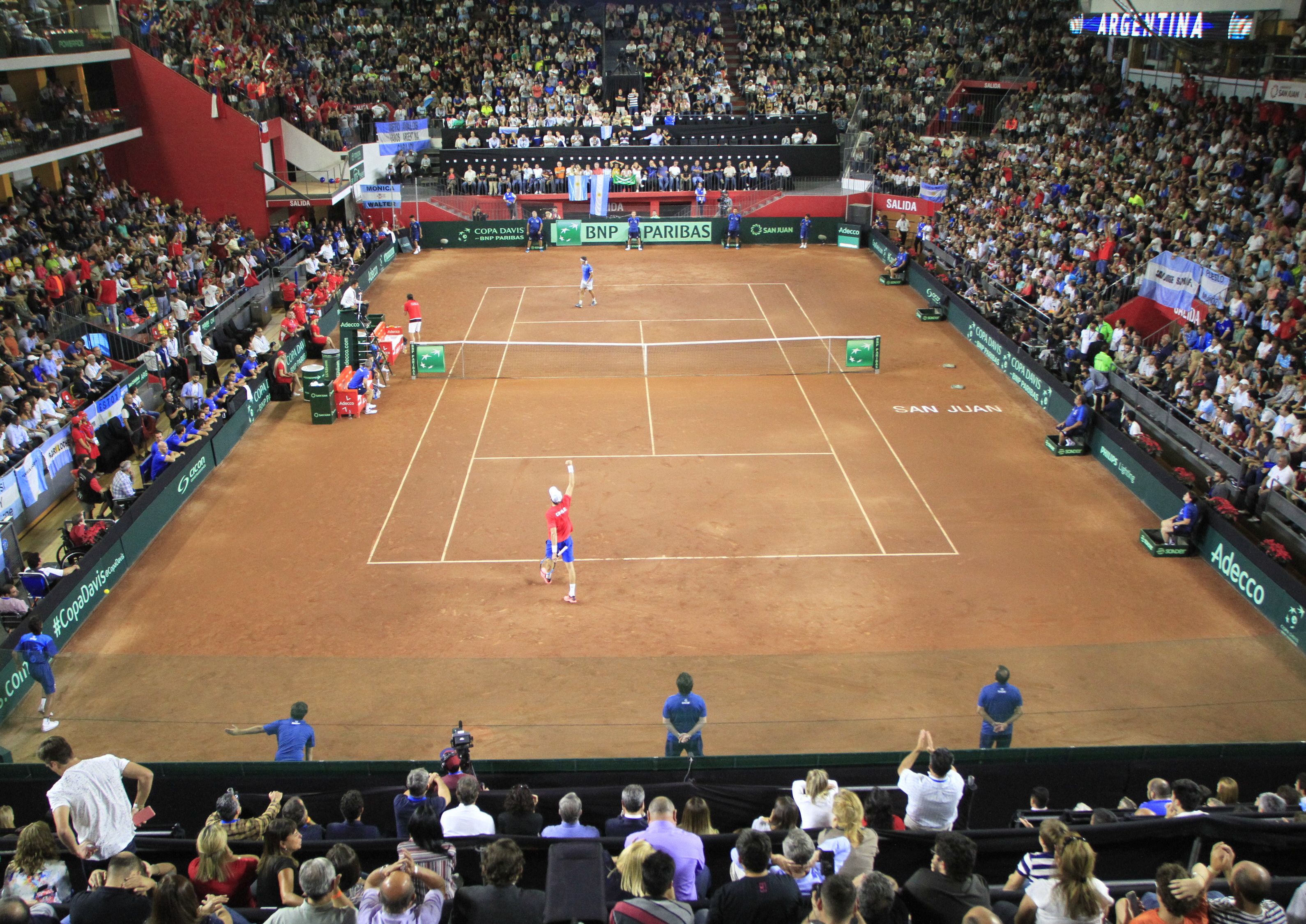 De nuevo. En abril pasado, el estadio Aldo Cantoni se convirtió en una cancha de tenis, con la serie ante Chile. A fin de mes empezarán los trabajos para volver a instalar la superficie, que nuevamente será de polvo de ladrillo.
