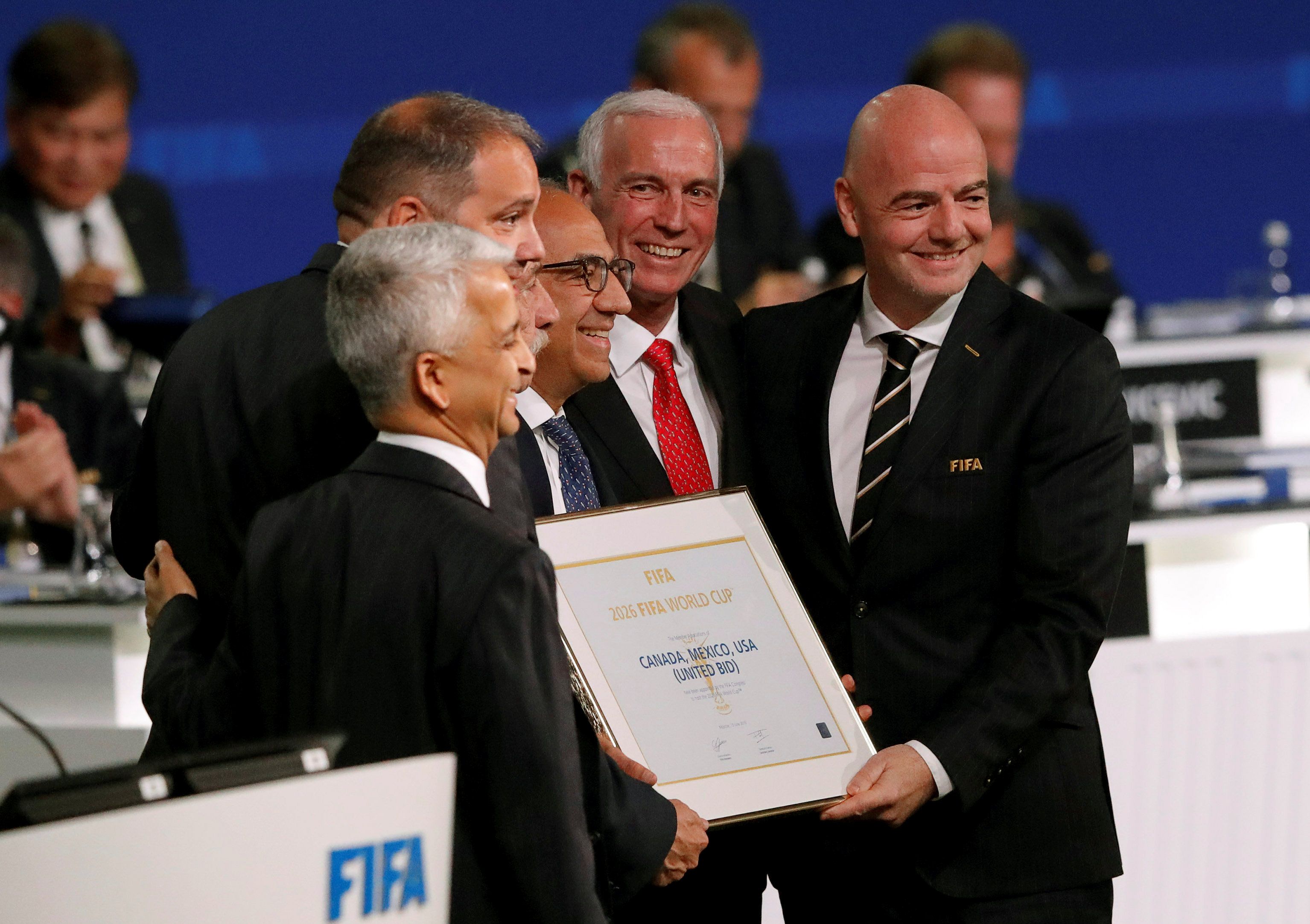 De esta manera México será sede por tercera vez de un mundial luego de organizar el de 1970 (lo ganó Brasil) y 1986 (se consagró Argentina), Estados Unidos lo hará por segunda vez tras la copa de 1994 (triunfo de Brasil) y Canadá tendrá su primera experiencia como sede.