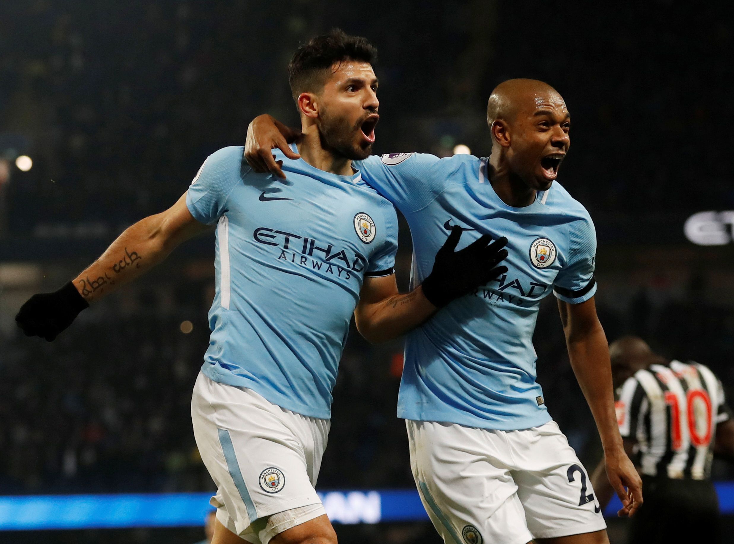 El delantero argentino Sergio “Kun” Agüero marcó los tres goles de Manchester City, su equipo, sobre Newcastle por 3-1, como local, y se consolidó en el liderazgo de la Premier League inglesa de fútbol tras disputar un encuentro correspondiente a la 24ta. fecha.