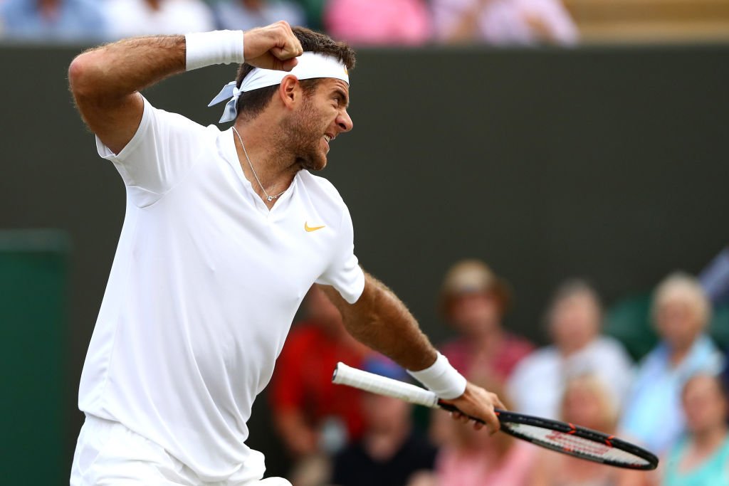 El tenista argentino Juan Martín del Potro venció al francés Gilles Simon por 7-6 (1), 7-6 (5), 5-7 y 7-6 (5), en cuatro horas y 20 minutos, y avanzó a los cuartos de final del torneo de Wimbledon, a una sola victoria de su techo en este Grand Slam, las semifinales de 2013.