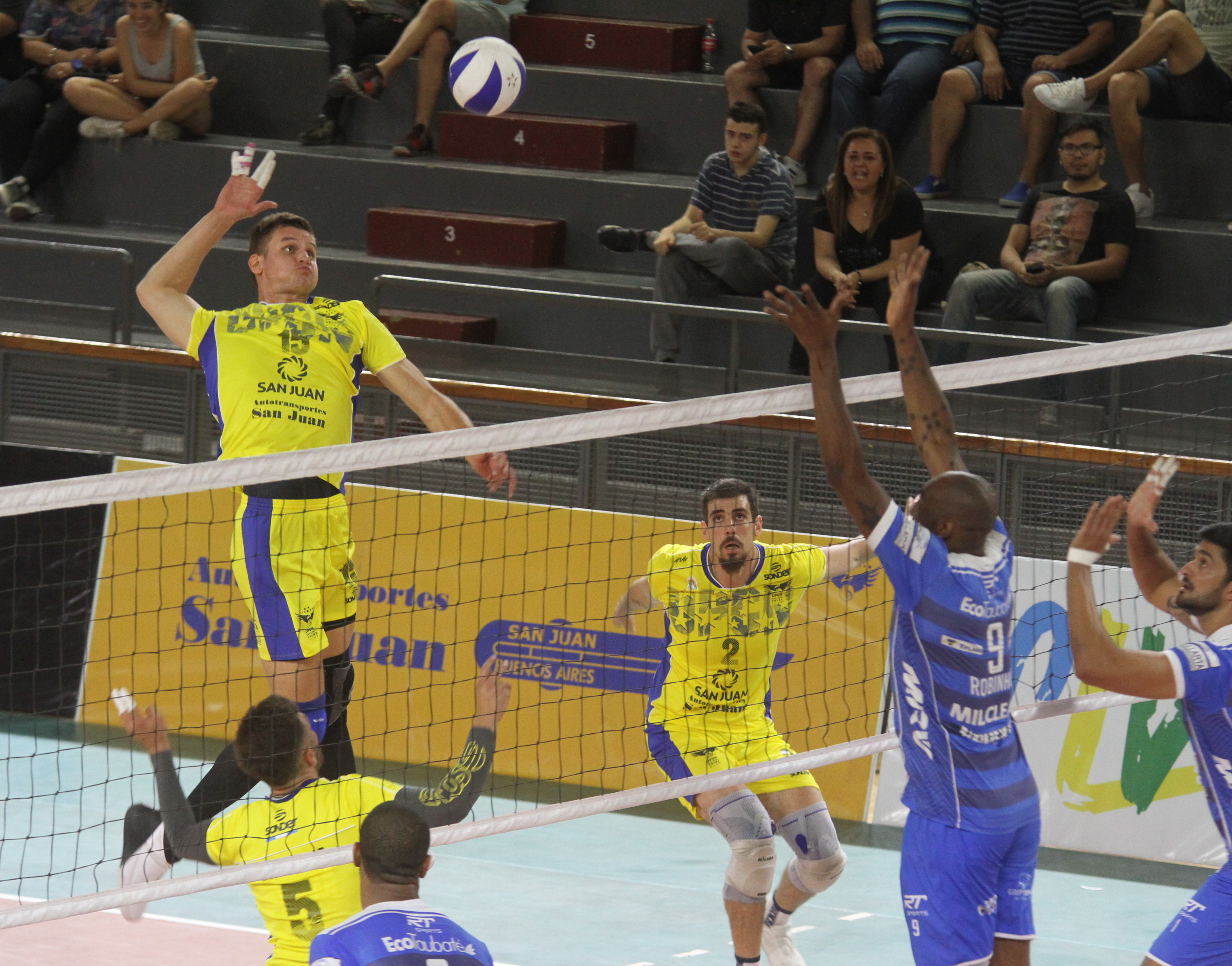 Fue un buen partido de los sanjuaninos, especialmente en los dos primeros sets. Una vez que se acomodó en cancha, jugó un intenso mano a mano con los brasileños, que tienen a los argentinos Nicolás Uriarte y Facundo Conte en sus filas. La definición del primer parcial fue dramática y se extendió hasta el 35-33, que fue para el visitante porque acertó un ataque y aprovechó un error del local.