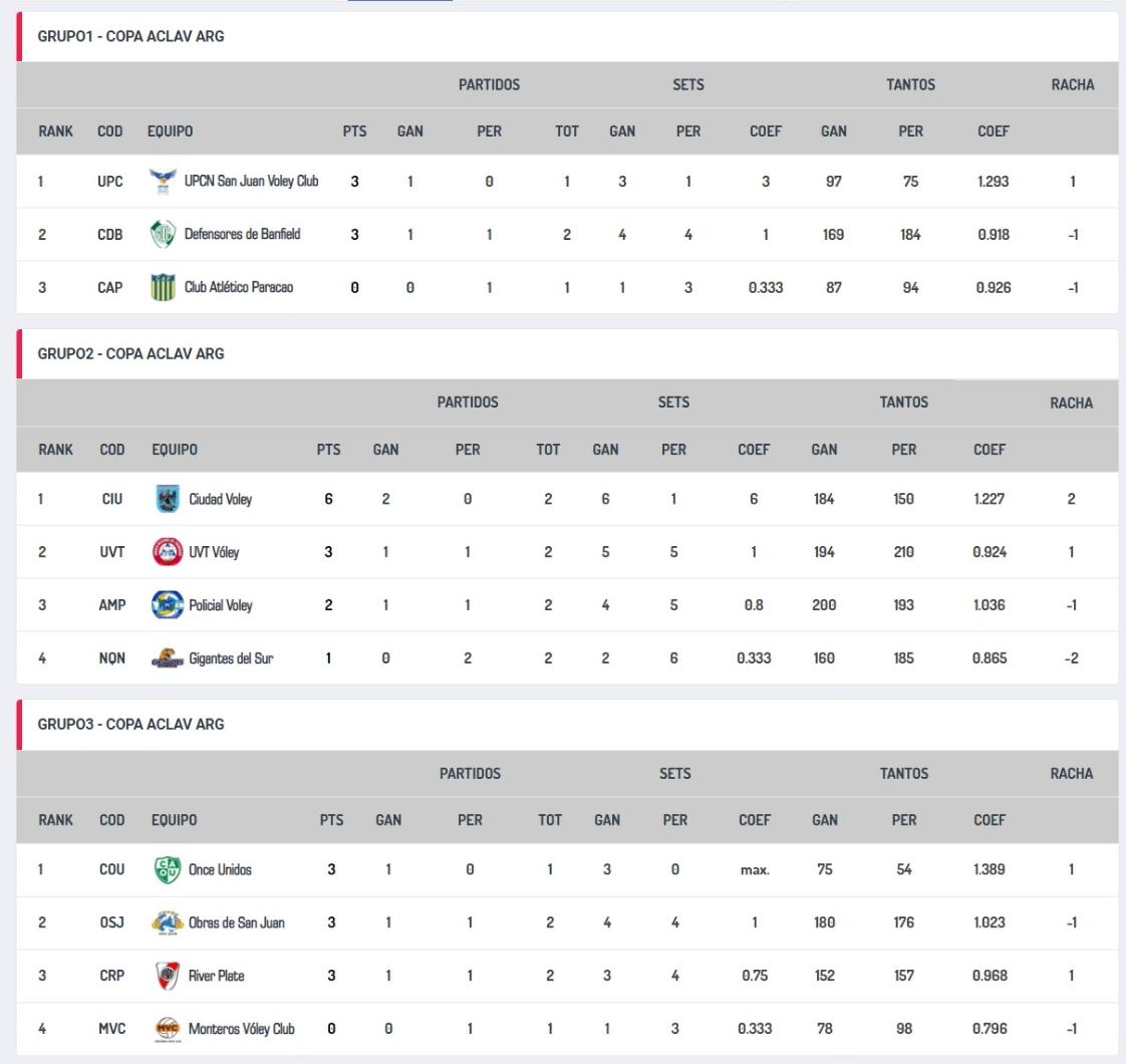 UPCN San Juan Voley inició la defensa del título en la Copa ACLAV Argentina con un triunfo, al superar a Defensores de Banfield por 3 a 1 en partido correspondiente a la segunda fecha de la Zona 1 del torneo que se juega en Mar del Plata. Los sanjuaninos ganaron con parciales de 22-25, 25-17, 25-16 y 25-17, en un juego que tuvo al opuesto de Banfield, Antu Isso, como máximo anotador: 19 puntos.