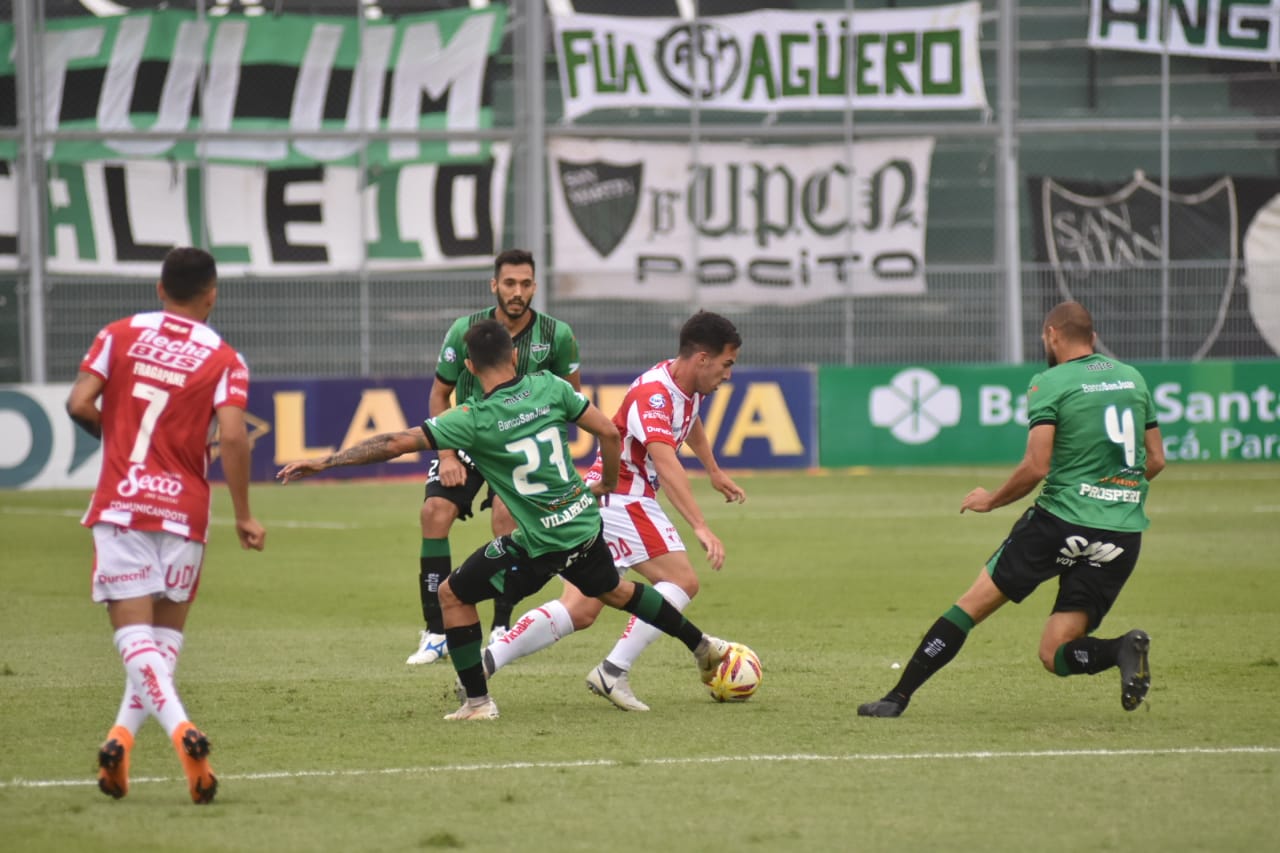 El primer gol llegó en la etapa inicial: desajuste defensivo entre Gómez Andrade y Nereo Fernández para servirle el gol al delantero de San Martín. Y ya en el segundo tiempo, cuando el Santo jugaba con diez por expulsión de Prósperi -doble amarilla-, el propio Palacios Alvarenga extendió la cuenta con un certero cabezazo.