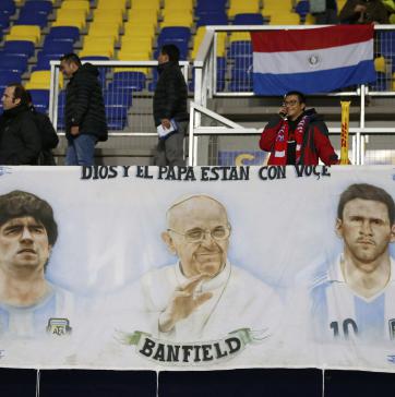 “Es la bandera que me ha dado Dios”, se leyó en una bandera argentina justo enfrente de los bancos de suplentes.