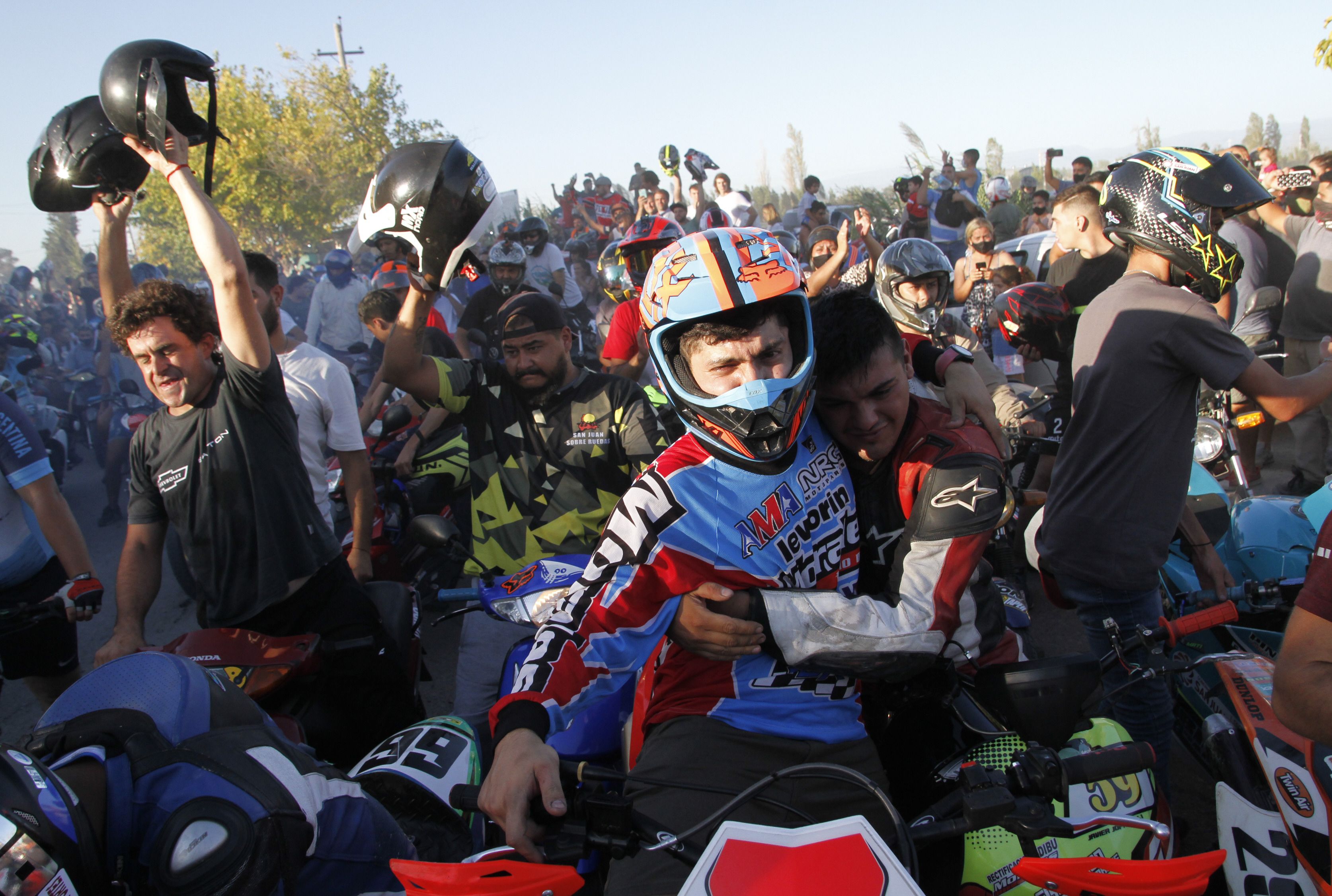 Tan indescriptible como emocionante. A pesar de que se viven tiempos de pandemia, los seguidores y amigos de Alberto Zapata no pudieron contenerse y le brindaron una despedida al piloto como él hubiese querido: a pleno rugir de los motores. Cerca de cinco mil motos, según cálculos de la Policía, fueron las que esperaron a lo largo del Conector Sur -desde 9 de Julio y hasta Pedro de Valdivia- para despedir al piloto. Habían de todas las marcas y cilindradas. Todos querían estar presentes para brindarle el último adiós. Reconocidos pilotos del motociclismo de velocidad y que también compartían una fuerte amistad con el Wey, como Mauricio Quiroga y Matías Soto, encabezaban el grupo de las motos. Hubo muchos pilotos con camisetas de Unión, club del cual el Wey era hincha e integrantes de la Peña de Boca fueron al cementerio.