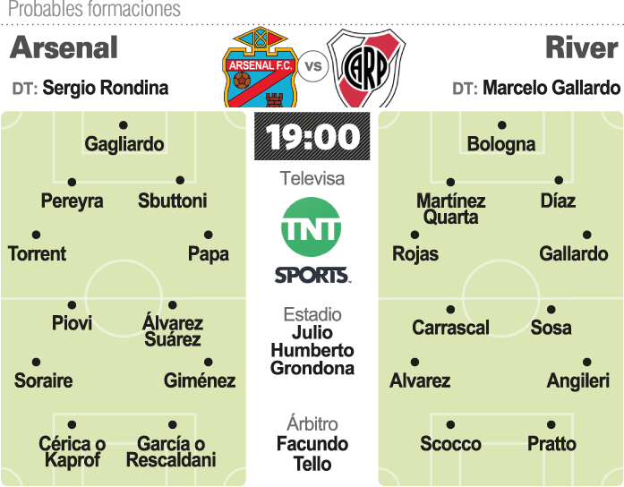 River visitará mañana a Arsenal (19 horas por TNT Sports Premium) con un equipo integrado por suplente. Nada más importante para el River de Marcelo Gallardo que la revancha ante Boca y la posibilidad de conseguir el pase a la final de la Libertadores 2019 ante Flamengo o Gremio de Brasil en Santiago de Chile el próximo 23 de noviembre.