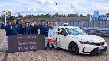 Obtuvo el récord al volante de un Honda Civic Type R 2023, un auto con preparación deportiva que acaba de lanzarse en algunos países de Europa. Completó la vuelta al trazado norte (Nordshleife) en 7 minutos y 44:881 segundos.