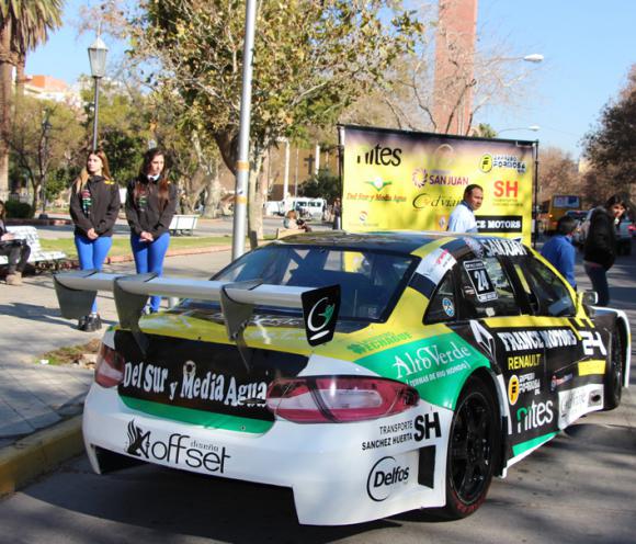 San Juan.- Durante la mañana de hoy, los amantes de los fierros se dieron el gusto de poder ver uno de los vehúculos del Top Race, estacionado sobre calle Rivadavia, frente a Plaza 25 de Mayo. El rodado, que pertenece al sanjuanino Eric Koller, rápidamente captó la atención de los que pasaban por el lugar.