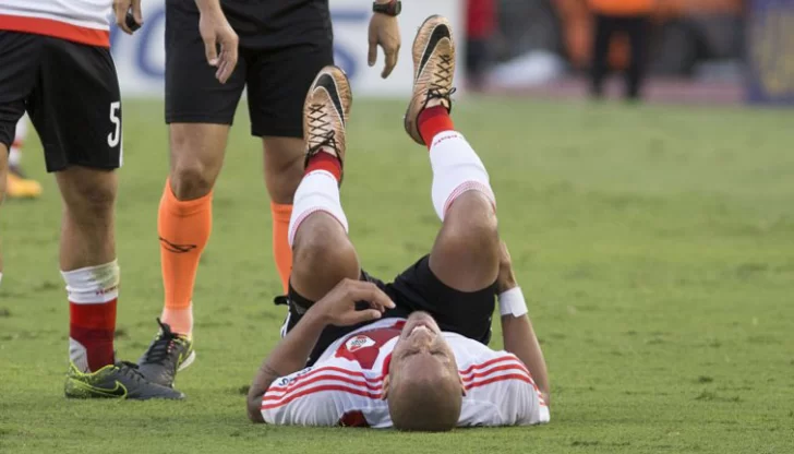 La lesión del defensor se produjo sobre los 44 minutos del segundo tiempo, cuando corrió una pelota ante la presión de Carlos Tevez. El jugador, que rápidamente se tiró al piso tomándose la parte posterior del muslo se quedó en el campo pese al cuadro porque River había agotado los cambios.