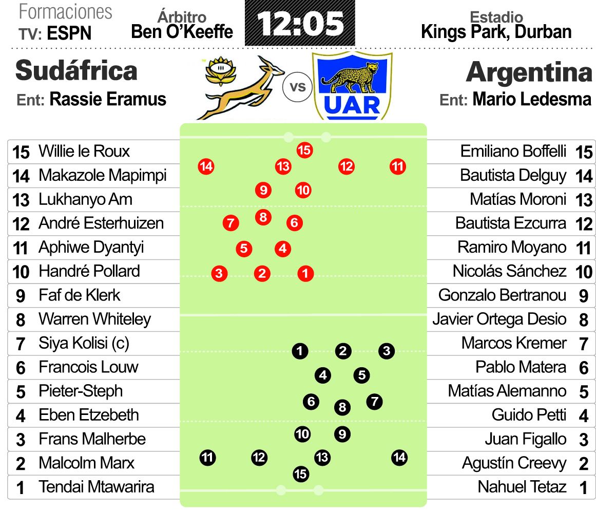 Sudáfrica en Durban espera a Ledesma y sus dirigidos. Rassie Erasmus transita su primer año como DT y los Springbooks buscan ganar un Championship por primera vez. Viven una etapa de recambio generacional y deberán desbancar para ese objetivo a unos tales All Blacks que otra vez son los claros favoritos.