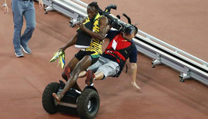 Sin embargo, en plena celebración, se produjo un accidente que podría haberle costado caro al velocista. Es que un camarógrafo atropelló y hizo caer a Bolt, que sólo atino a levantarse y sonreír. ¿Y se le lesionaba?