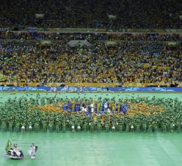 Una protesta en el césped del Maracaná empañó brevemente la ceremonia de clausura de la Copa Confederaciones, antes del partido entre Brasil y España. Dos figurantes, disfrazados de balones, se saltaron el protocolo, salieron de la formación y desplegaron una pancarta, cuyo mensaje fue legible en algunas partes del estadio, antes de ser retirados del césped por responsables de seguridad.