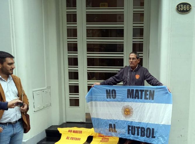 Ante la "falta de respuestas", Escobar decidió encadenarse a la puerta de la sede de la AFA, en la calle Viamonte al 1300.