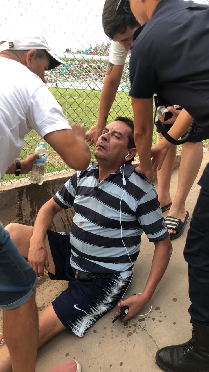 En medio de un duelo caliente, un miembro de la comisión directiva del equipo visitante, Raúl Pacheco, recibió un fuerte piedrazo en su rostro, que le provocó algunos cortes y tuvo que ser asistido en el lugar.