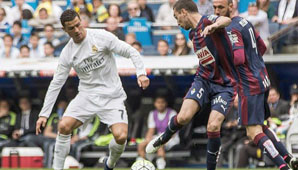 Cristiano perdió un balón cerca del área del Eibar y Gonzalo Escalante, ex Boca, no tuvo mejor idea que tirarle dos caños. Ante ello, el crack sólo atinó a caerse y simular una falta, pero el árbitro no cobró.