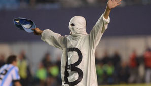 Buenos Aires, 10 de junio.- Racing celebró por partida doble este domingo, mientras superaba a Boca en su cancha los hinchas le dedicaron carteles y canciones a Independiente ante su inminente descenso. El punto más alto de la noche se dio en el comienzo de la segunda mitad cunado un fanático disfrazado de "fantasma de la B" ingresó a la cancha.