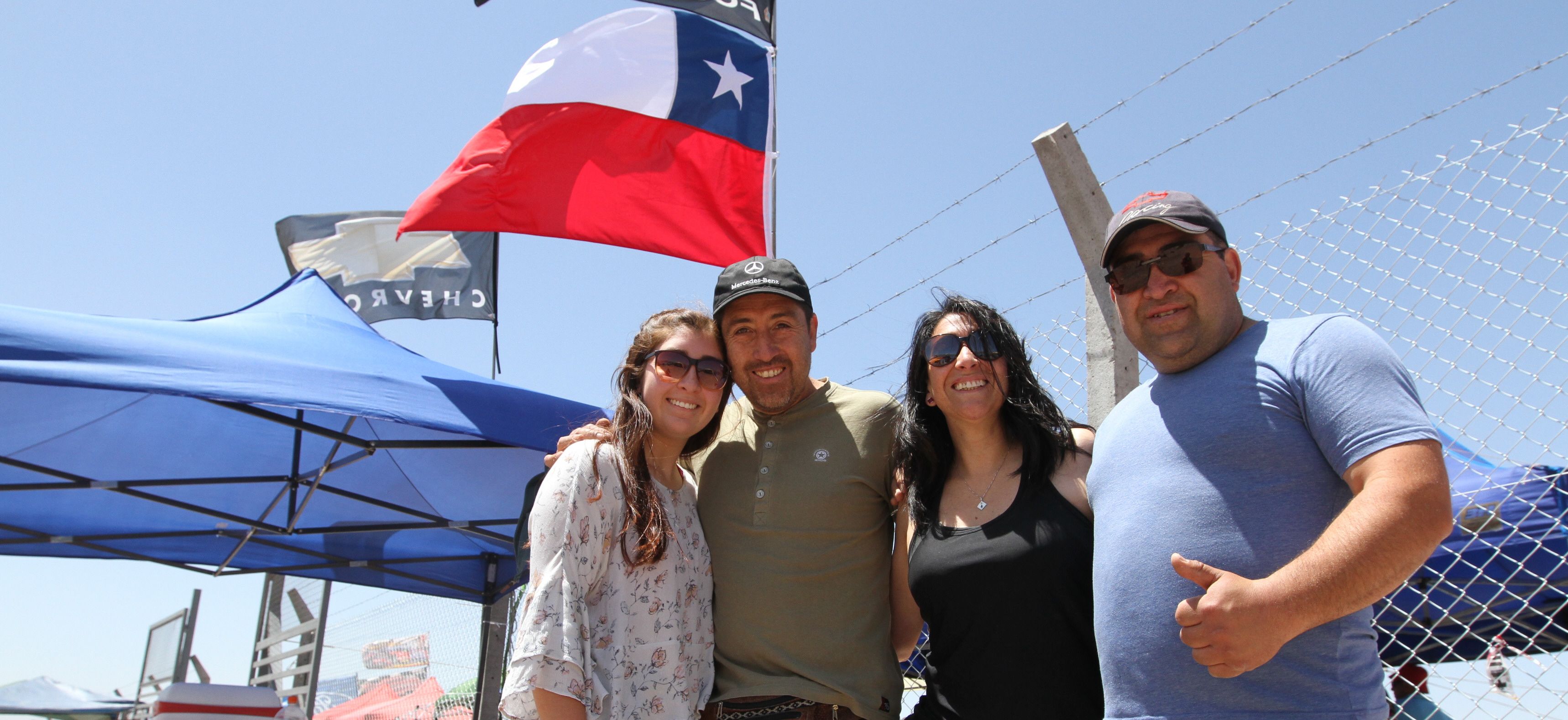 Karla, Carlos y Andrés Jorquera junto a Marisel Vega son oriundos de Puerto San Antonio, en el vecino país de Chile y llegaron a San Juan para alentar a Ford, Chevrolet y Dodge. "Nos hicimos fanáticos del TC en el 2004 y desde ahí los seguimos cada vez que podemos", contaron. Ya conocen los circuitos de Río Cuarto, Villa Mercedes y Rosario y dijeron que San Juan ocupa el podio de los "autódromos más coquetos". Hicieron asado y tomaron mate, "ya somos casi argentinos" bromearon.