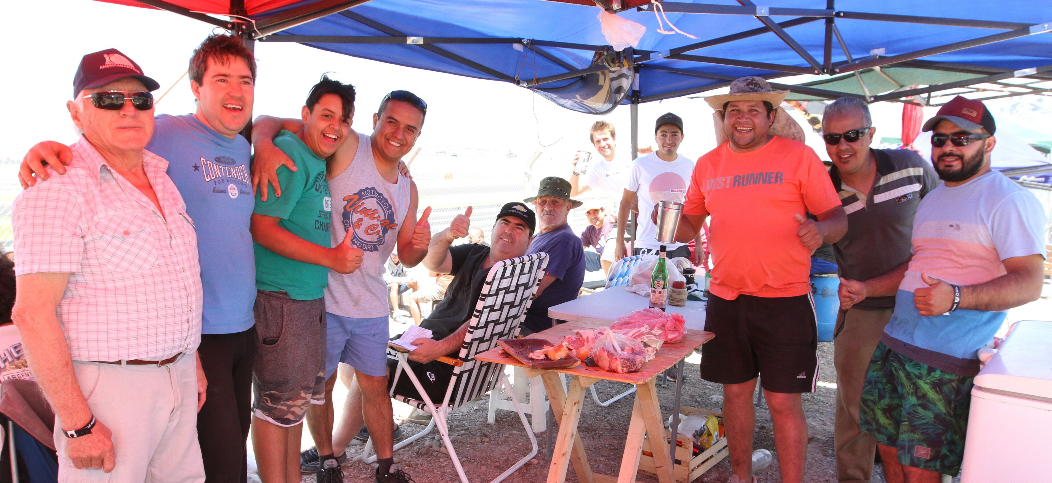 Este grupo de fanáticos sanjuaninos apenas conocido el regreso del TC a San Juan comenzó a planificar lo que sería un fin de semana a puro fierro. Por eso llegaron el viernes con freezer, mesas, sillas, carpas y, lógicamente, varios kilos de carne para preparar el clásico asado y decenas de botellas de vino, fernet y cerveza. "No llevamos muy bien la cuenta de cuánto trajimos, pero calculamos para que nos alcance para todo el fin de semana. Esto que estamos viviendo es único", contaron.