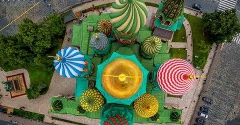 En realidad, la misma está compuesta por nueve capillas independientes (foto), dedicadas a cada uno de los santos en cuyas festividades el zar ganó una batalla. Al construir la torre central, el conjunto aparece unificado. No obstante, ninguna es más importante que la otra, ya que todas guardan el mismo significado.