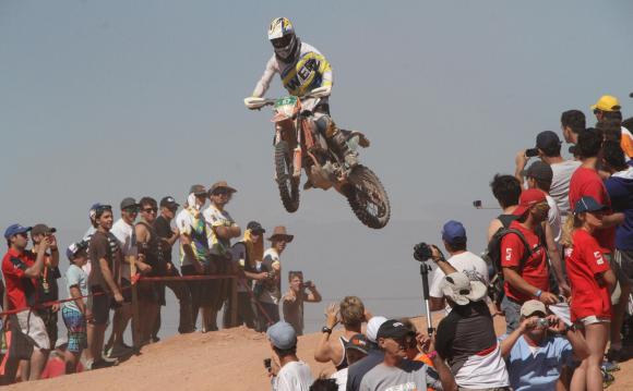 Once de la mañana y un calor infernal. Ni que hablar a las doce del mediodía cuando el termómetro escalaba a los 30 grados. Claro, esa temperatura se elevaba aún más y se hacía sentir feo bajo los fuertes rayos de Sol. Ayer, a pesar de lo imposible que resultaba poder conseguir una sombra para pasar la jornada, cinco mil espectadores acudieron a los tres circuitos que le dieron vida a la quinta y penúltima jornada del Six Days de enduro.