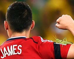 James Rodríguez, la figura y goleador del equipo, se paró frente a la pelota con gran determinación, pero en el momento de ejecutar no estaba solo: un enorme insecto se paró sobre su brazo derecho.