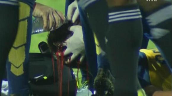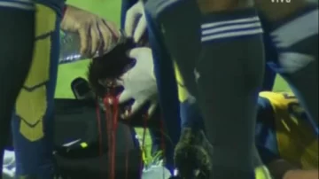Venezuela, 18 de marzo.- En el partido en el que Boca goleó a Zamora por 5-1, el defensor xeneize argentino Juan Komar sufrió un gran corte, tras un choque de cabezas con un rival.