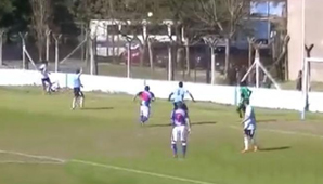 A los 32 minutos del duelo correspondiente al torneo de la Primera C, que ganaba el local por 1-0, Gigliotti llegó exigido a la línea final -entre el córner y el área grande- e intentó tirar el centro con la zurda, aunque la pelota ya estaba afuera. El envión, y el no poder apoyarse bien, hicieron que terminara impactándose contra el paredón, apenas a un metro y medio de la línea.