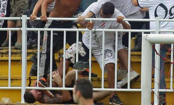 El Campeonato Brasilero de fútbol tuvo ayer una jornada trágica, más allá de la consagración del Cruzeiro cuando restan cuatro fechas para el cierre. Es que en uno de los partidos que definió el descenso de un club histórico de ese país como el Vasco da Gama, se produjo una terrible gresca en la tribuna contra los hinchas del Atlético Paranaense, dejando el saldo al cierre de esta edición de un muerto y tres heridos graves. La pelea en la tribuna se dio durante varios minutos y provocó la suspensión del encuentro durante una hora. La violencia entre las parcialidades provocó, incluso, el llanto de varios futbolistas que observaban incrédulos desde el campo de juego.