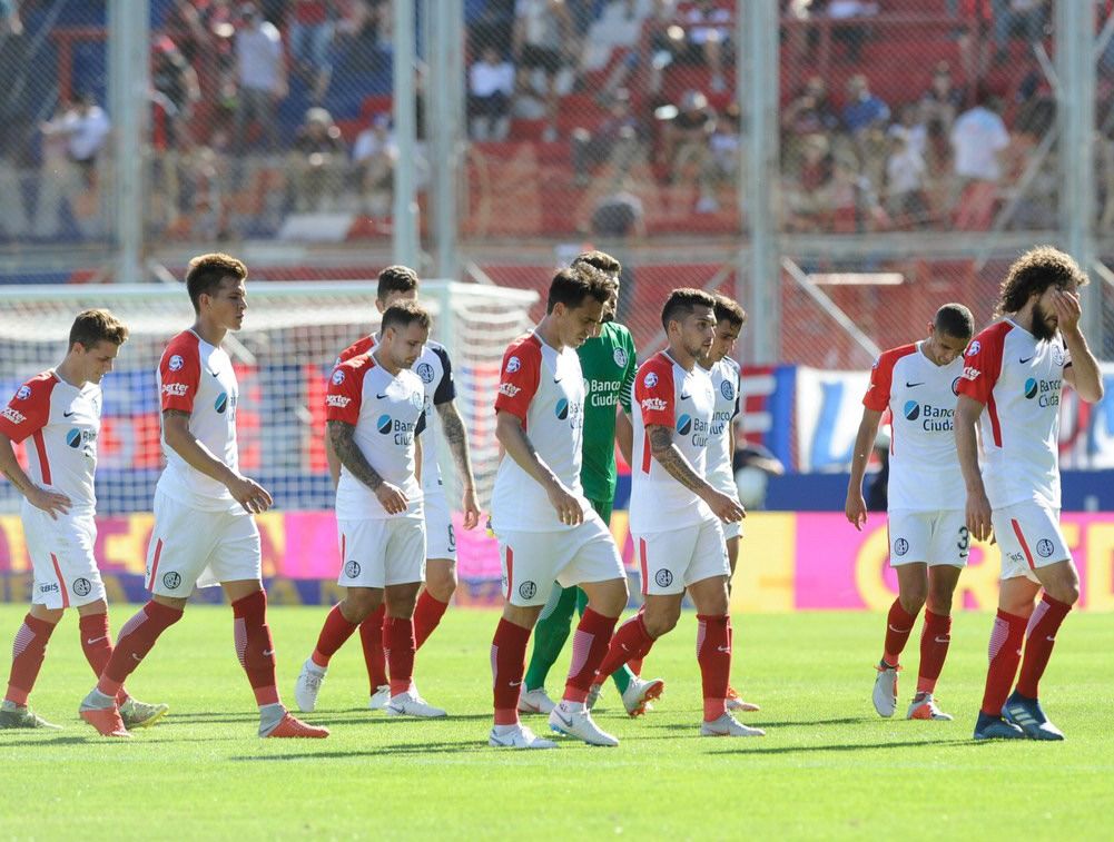 Perdido y sin rumbo. Los jugadores de San Lorenzo se retiran del campo de juego tras una nueva derrota en esta Superliga.