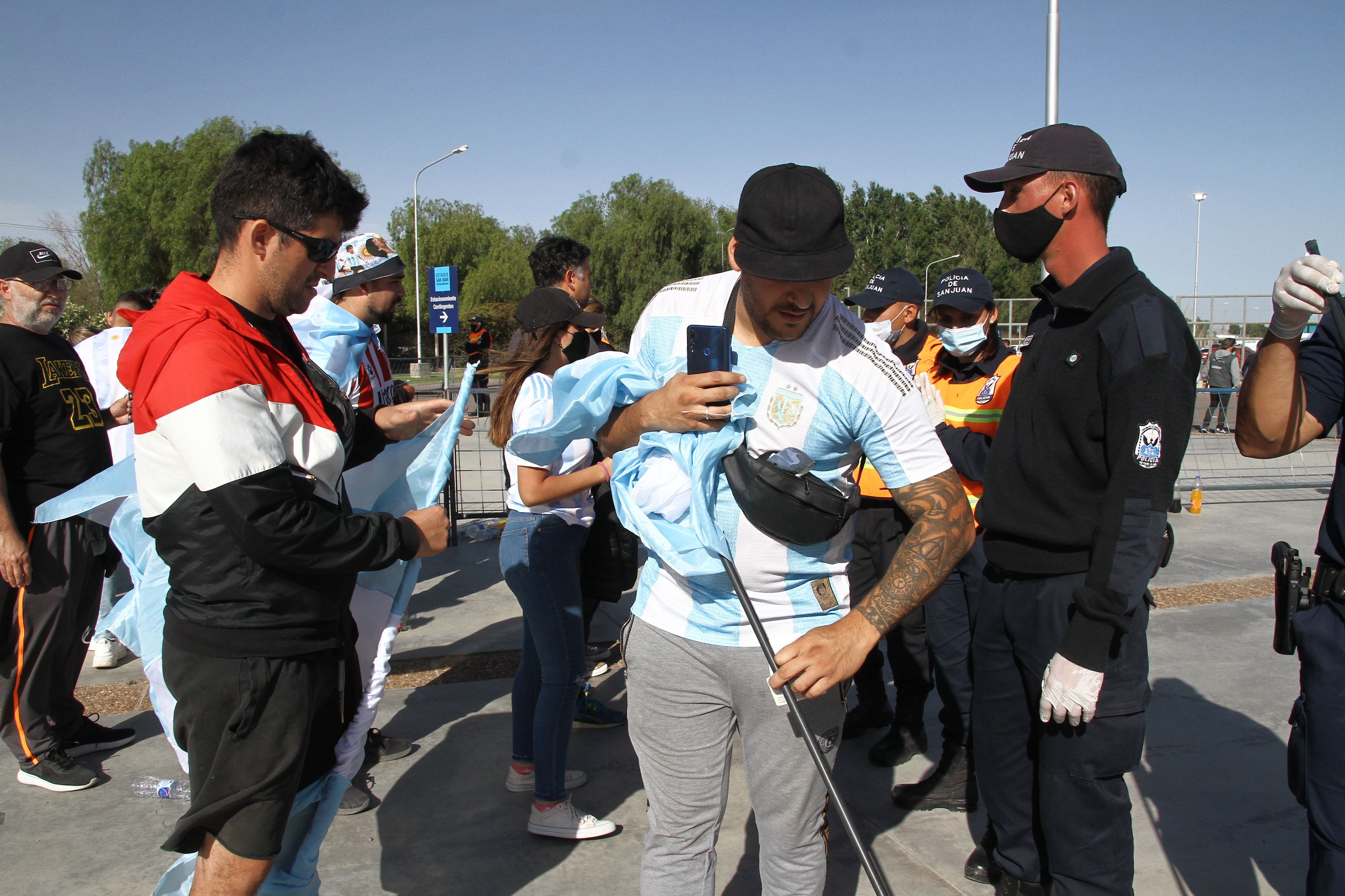 Tanto la llegada como el egreso de los espectadores del Bicentenario se dio de forma normal. Sin ningún tipo de incidentes en los alrededores, ni dentro del estadio pocitano. El estricto control de parte de la policía y el chequeo exhaustivo de los entradas desarticuló cualquier inicio de conflicto. No son puntos menores teniendo en cuenta que en los últimos partidos disputados por Eliminatorias en el estadio de River se dieron diversos altercados.