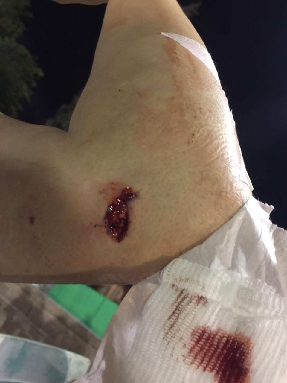 El simpatizante puyutano dijo que no obtuvo ninguna respuesta por parte de los uniformados y que le soltaron el perro desde atrás. En el mismo club tuvieron que asistirlo porque tuvo una importante pérdida de sangre y luego fue hasta el Hospital Rawson, donde le hicieron 8 puntos, de manera interna y externa porque el animal le clavó los colmillos de abajo y arriba.