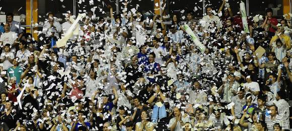 La gran mayoría de los hinchas argentinos llegó temprano al estadio para encontrar su lugar. Primero apoyaron a Italia en su juego con España y luego se dedicaron a cantar contra los rivales de turno. El equipo trasandino fue el primero en ingresar a la pista y lo hizo bajo un fuerte silbido. Cuando le tocó la entrada a la Argentina todo cambió, los papelitos colmaron la escena y el tradicional “¡Vamos, vamos, Argentina, vamos, vamos a ganar!” fue una constante.