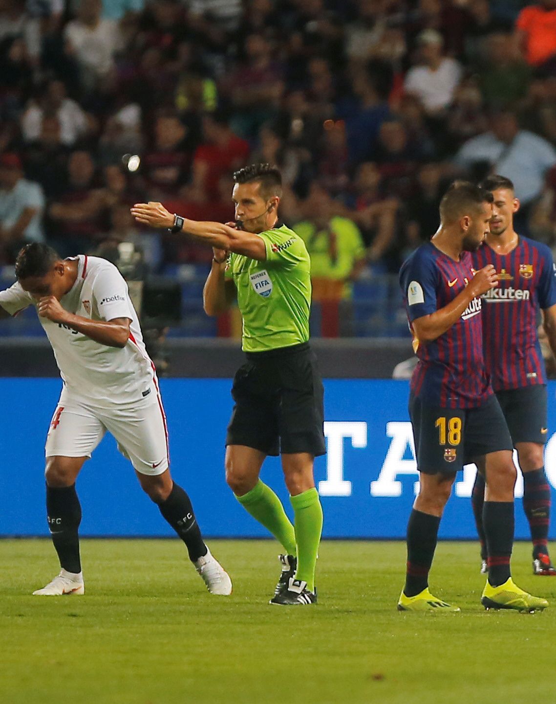El fútbol español le abrió la puerta a la Asistencia Arbitral por Video (el VAR) de cara a la temporada 2018/2019. Y la primera intervención, decisiva, se dio en el duelo por Supercopa española entre Sevilla y Barcelona en Tánger, Marruecos: Pablo Sarabia logró celebrar el 1-0 con cierto retardo hasta que el árbitro Carlos del Cerro Grande constató que estaba habilitado.
