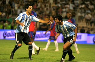 El desembarco "del show’ cumplió con las expectativas de la gente que, a pesar de algunas dudas previas instaladas incluso en medios nacionales, concurrió masivamente al estadio "Hilario Sánchez’. Las tribunas, ocupadas por 18.000 personas, casi no mostraron claros, y de entrada les gustó el escenario con los paneles electrónicos de publicidad. Aplaudieron a los jugadores, corearon el nombre de Maradona y le dieron también un reconocimiento a Palermo. Cantaron el himno nacional y hasta (salvo un par de gritos aislados) respetaron el pedido de 1 minuto de silencio por las víctimas de Haití. Comenzó el partido y a los 11 minutos ya ganaba Argentina con un gol de Sosa. En síntesis, el padre que había llevado por primera vez a la cancha a su hijo, sentía en ese momento que estuvo bien haber metido la mano en el bolsillo para ir a ver este espectáculo que vaya a saber uno cuando se presentará otra vez en estas tierras, más allá de la promesa de don Grondona.
