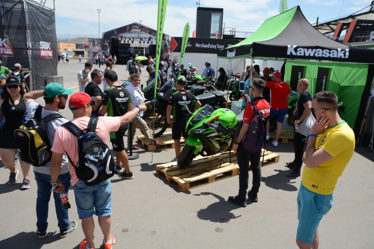 La otra atracción fue la exposición de Kawasaki, una marca que no está en el Moto GP y es furor en el Superbike. Allí, los amantes de la firma japonesa posaron para las fotos junto a las espectaculares motos y también con las promotoras del stand.