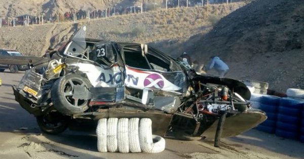Tremendo el #Accidente del piloto Matias Milla @matumilla (Así quedó el auto) con el que sufrió en una de las chicana del Zonda de San Juan.