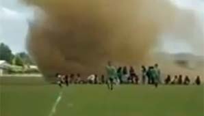 Diario de Cuyo | HOME | Pasión Deportiva | Insólito Un tornado futbolero Un tornado invadió una cancha de fútbol en pleno partido. Los jugadores intentaron continuar con el encuentro, pero fue imposible. Mirá el curioso video. Por Redacción Diario de Cuyo 04/10/2012 · 0:00 Ver los comentarios ›