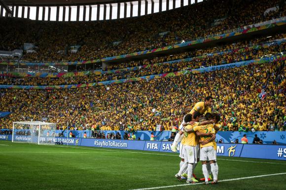 Brasil goleó a Camerún por 4-1 en el estadio Mané Garricha de la capital Brasilia y jugará frente a Chile en los octavos de final del Mundial 2014, tras adjudicarse el Grupo A. Neymar, a los 16 y 34 minutos del primer tiempo, encaminó la victoria local y quedó como máximo anotador de la competencia con cuatro tantos en tres partidos. Fred y Fernandinho, a los 4 y 39 de la segunda etapa, anotaron los goles restantes del conjunto de Luiz Felipe Scolari, mientras que Matip, a los 26, había marcado la igualdad transitoria para los africanos.