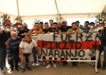 "Fuerza Pikito Naranjo". La frase plasmada en esa bandera con los colores rojo y blanca y la firma "La Bebida", se fue para siempre con Nicolás Naranjo. El "trapo" fue realizado por "Los pibes de las Cuatro Esquinas", la zona de esa localidad de Rivadavia donde se crió el ciclista. Sus amigos de la infancia, Rodrigo, Tito, Benjamín, Pato, Emiliano, Agustín, Marcelo, Emanuel, Kevin y Mono, entre otros, acompañaron a Nico desde los Infantiles de ciclismo y decidieron plasmar su apoyo en esa bandera para la Vuelta a San Juan del 2014. Esa bandera, que mostraron en cada una de las competencias donde corrió Nico, ayer se fue junto al féretro. "Desde que tengo noción somos amigos, nos criamos juntos y hemos compartido toda la vida. Tenemos que estar unidos y fuertes para acompañar a su familia", comentó Rodrigo. A ellos, no les llamó nada la atención la multitud que acompañó al "Pikito" como ellos lo apodaban: "Esto es lo que él sembró, siempre se hizo querer por donde fue. Por eso no nos sorprende que venga tanta gente, es lo que se merecía", comentó Tito. El velatorio se llevó a cabo en el campo de juego del Sportivo Rivadavia, el club de sus amores y los chicos recordaron el sueño que tenía Nico: "Nosotros siempre nos dedicamos al fútbol y él al ciclismo. Siempre nos decía que soñaba con jugar, que iba a hacer un gol y la gente lo iba a ovacionar", comentaron. Entre risas, recordaron a Nico en los "picaditos": "Se va extrañar nuestro "9", es que él siempre decía que era el goleador aunque pocas veces hacia goles".