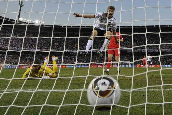 A los 23′, Alemania marcó el gol. El arquero Neuer lanzó la pelota a tres cuartos del campo, Klose ganó el forcejeo a Upson y alargó la pierna derecha para batir a James en su salida.