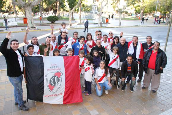 Las camisetas y banderas rojas y blancas dijeron presente en la producción de fotos. El que no tenía la banda en el pecho, la tenía en el trapo que sostenía con alguna de sus manos. La foto principal, sacada frente a La Catedral provincial, fue el momento de mayor expresión de los fanáticos de River con el esperado y ya clásico +dale campeón, dale campeón+.