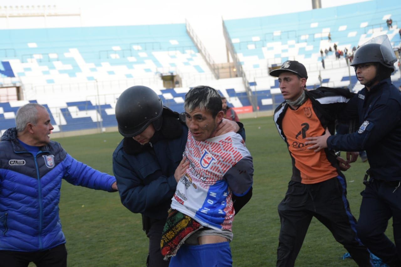 En los últimos minutos del partido en el Estadio del Bicentenario y cuando el encuentro estaba 2-1 en favor del equipo de Villa Krause, los hinchas azules comenzaron a romper el alambrado de la Popular Norte. Apenas el árbitro finalizó el encuentro, cientos de simpatizantes ingresaron al campo de juego y protagonizaron un nuevo capítulo violento.