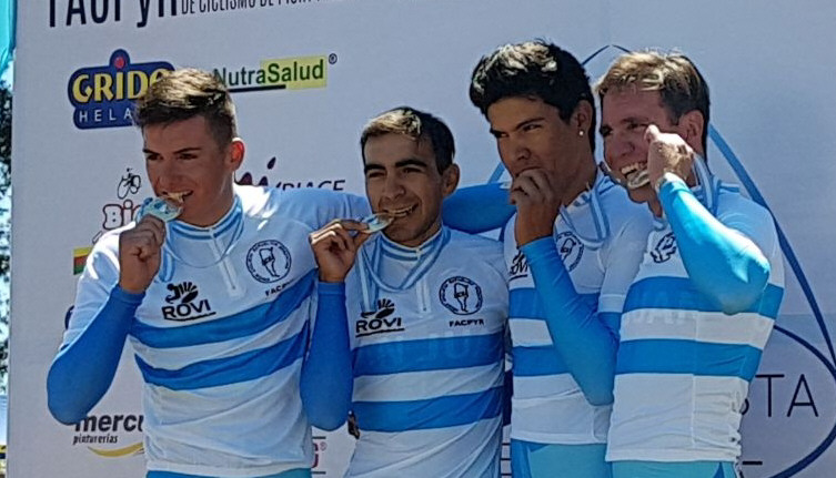 El festejo. Los cuatro sanjuaninos en el podio, festejando el logro en el que vencieron a Mar y Sierras.