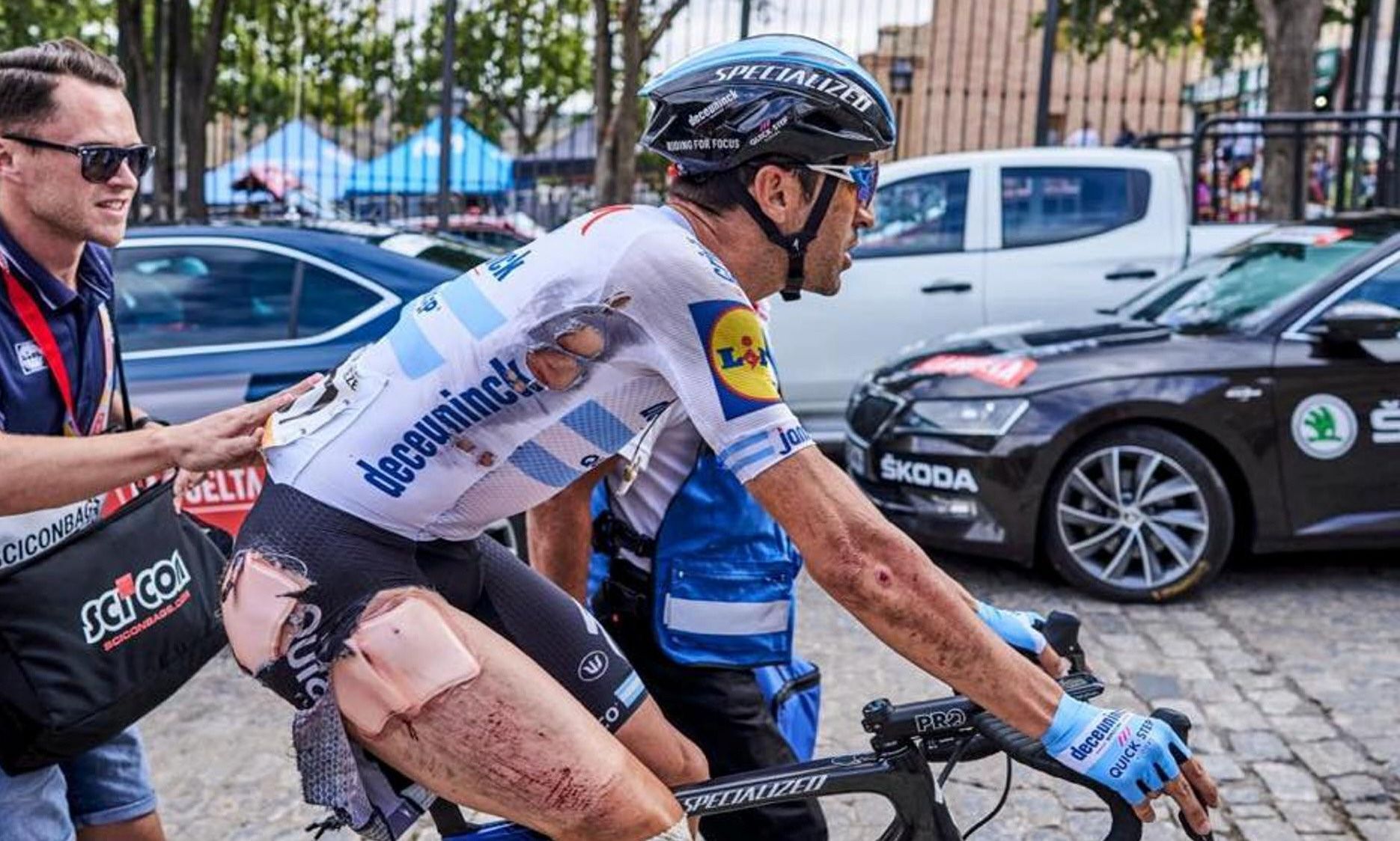La etapa transitaba por los cauces normales con los 11 aventureros bien avenidos para disputarse entre ellos la victoria en Toledo cuando a 66 de meta unos 20 corredores aterrizaron en el asfalto, entre el líder Roglic y también el argentino Maximiliano Richeze. En ese momento Movistar, que se salvó del accidente, se puso a tirar en cabeza, "una estrategia preparada en aquella zona", según explicó en plena carrera el director del equipo, José Luis Arrieta, pero esa "hazaña" les duró poco porque los comisarios dieron la orden de esperar a los afectados y reagrupar el pelotón principal, algo común en las grandes carreras, causando el malestar del Movistar. Hoy se disputará la vigésima etapa, entre Arenas de San Pedro y la Plataforma de Gredos, con un recorrido de 190,4 kilómetros.