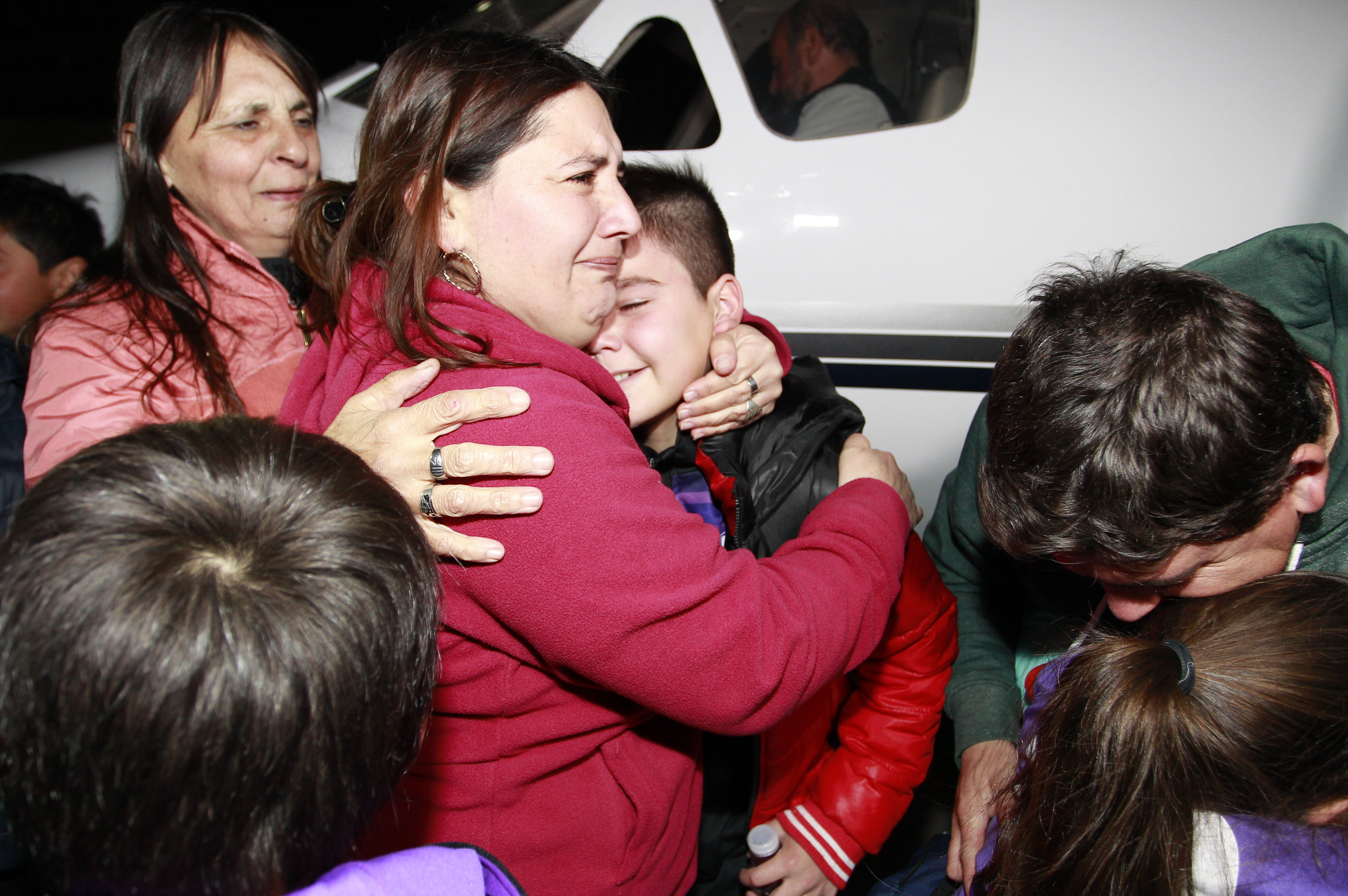 ”Unos minutos más y no la contábamos”, dijo con absoluta crudeza Uriel Olmos (13), apenas se bajó del avión y se abrazó con su padre. Él fue uno de los 10 chicos de Richet y Zapata que estuvieron al borde de la muerte por una intoxicación por monóxido de carbono en Entre Ríos, tras viajar para jugar un torneo infantil de hockey sobre patines. Anoche, pasadas las 22, la delegación llegó al aeroclub de Pocito y fue recibida por sus padres y varios integrantes del club, en un conmovedor reencuentro que tuvo escenas de abrazos interminables y llantos contenidos en plena explanada.